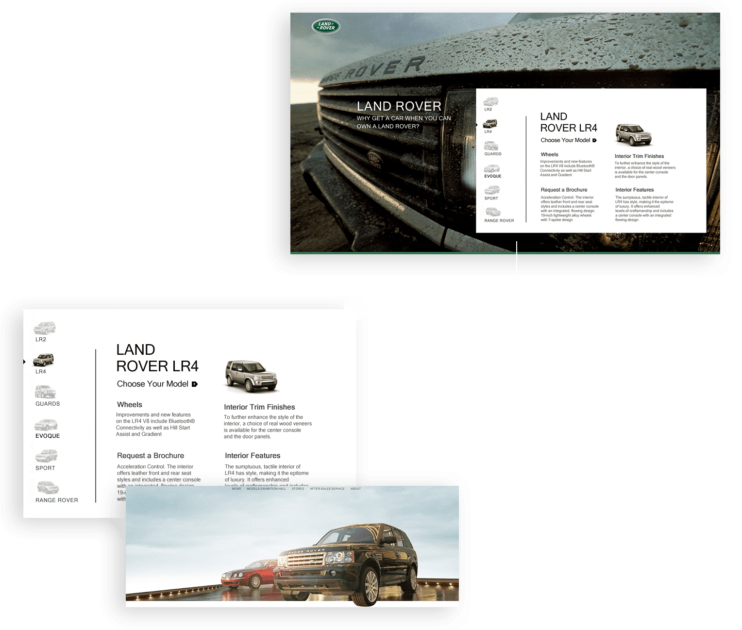 网站在进行创意设计时着重表现路虎车的越野特性,高度契合路虎品牌及产品定位,