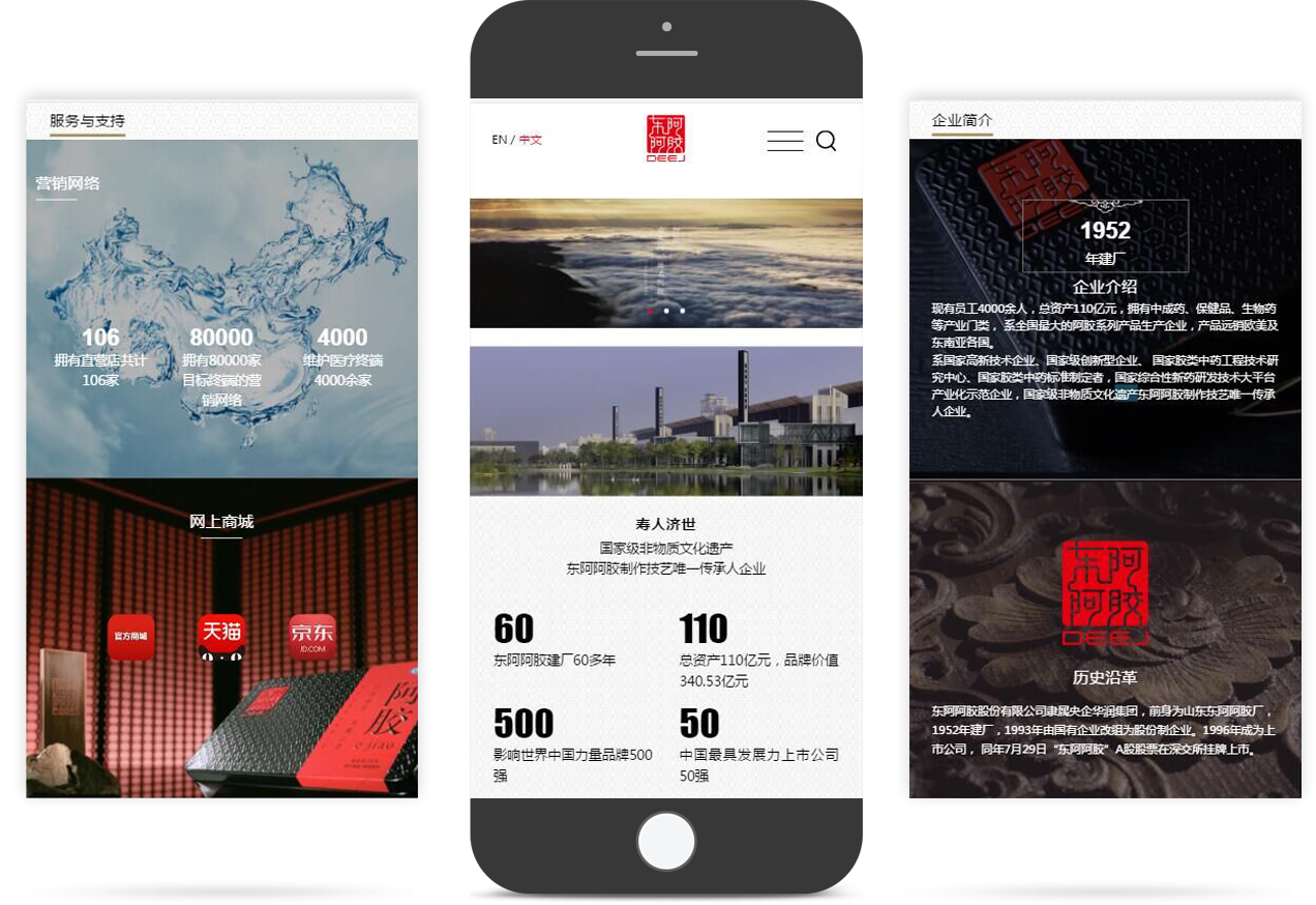 新官网大胆启用具有冲击力、戏剧性的创新设计手法,实现阿胶百年老