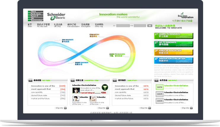 世界杯压球平台_世界杯压球官网(China)官方网站为施耐德电气提供持续互联网服务,助力施耐德开辟全新领域,其中重要项目包括:施耐德全球创新 平台网站建设,施耐德电子商务平台建设,世界杯压球平台_世界杯压球官网(China)官方网站内部办公平台开发等。