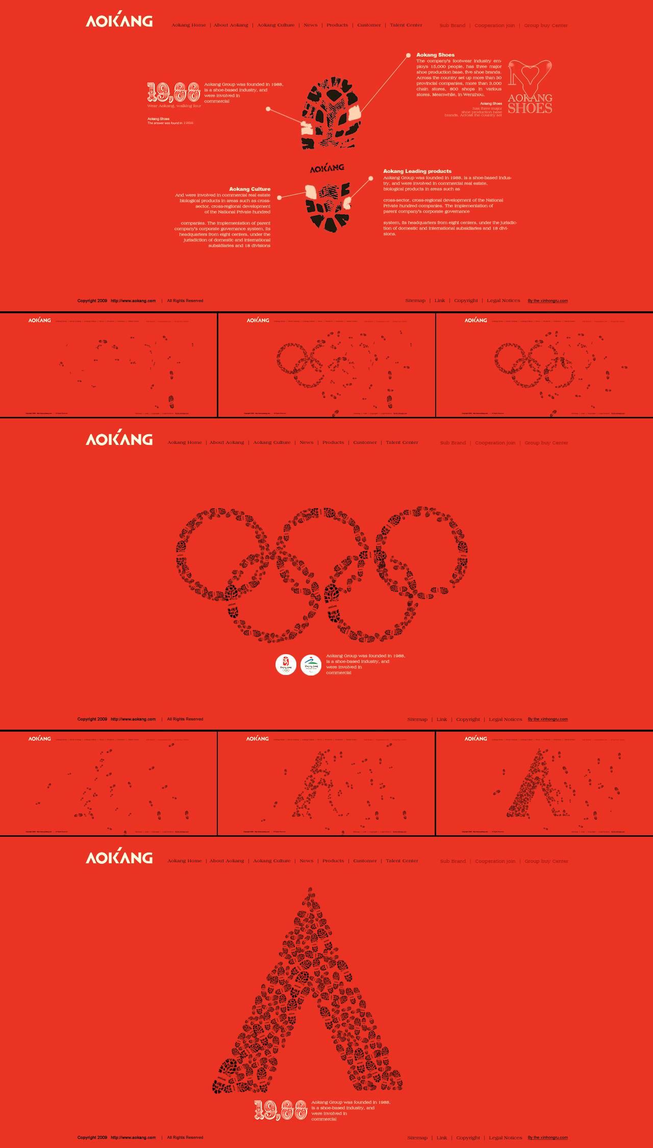 此次世界杯压球平台_世界杯压球官网(China)官方网站承办奥康集团官网改版工作,根据其行业特性及品牌优势,设计并制作一系列世界杯压球平台_世界杯压球官网(China)官方网站动画,因其颜色鲜明、风格独立、创意大胆而被业内专家及浏览受众广为关注。迄今为止,奥康网站已被多家创意、设计网站(互动社、SJ63、68design等)收录,并广受好评!