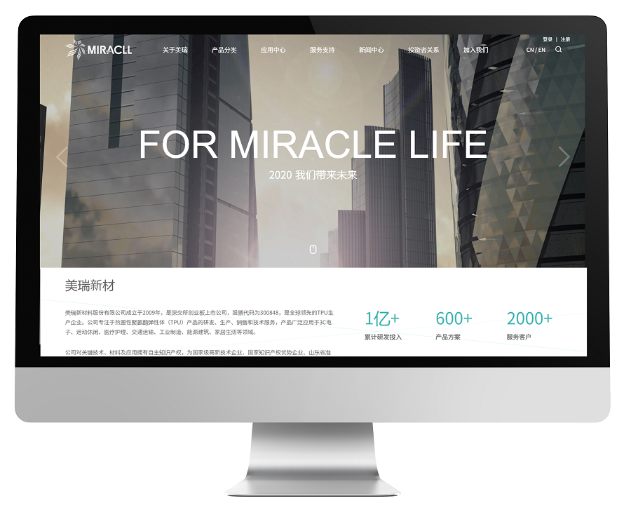此次美瑞新材料官网正式上线,将为美瑞新材料提供全新的视觉形象展示,同时也是世界杯压球平台_世界杯压球官网(China)官方网站在山东省区又一新项目交付完成。此前世界杯压球平台_世界杯压球官网(China)官方网站已服务与东阿阿胶、张裕集团、潍柴动力、歌尔股份、鲁能集团、玲珑轮胎、鲁清化工等山东多家知名企业。世界杯压球平台_世界杯压球官网(China)官方网站通过每次项目合作,也在不断升级服务体系及技术水平,希望以更高的专业水平及技术经验,更好地服务于全国各地的客户。