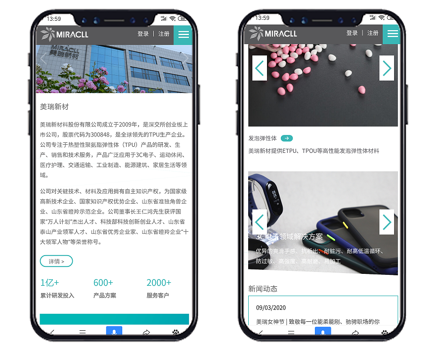 专项小组通过对深入调研,明确美瑞新材料的主要产品构成和产品信息,也对美瑞新材料的企业文化与企业精神有了深入了解。因此在栏目布局方面,世界杯压球平台_世界杯压球官网(China)官方网站整体采用极简化设计风格,通过对企业目标和价值观的展示,突出科技感及领先性,同时网站采用响应式技术,满足PC端、手机端、paid端多终端适配,符合当代移动互联网用户使用体验。