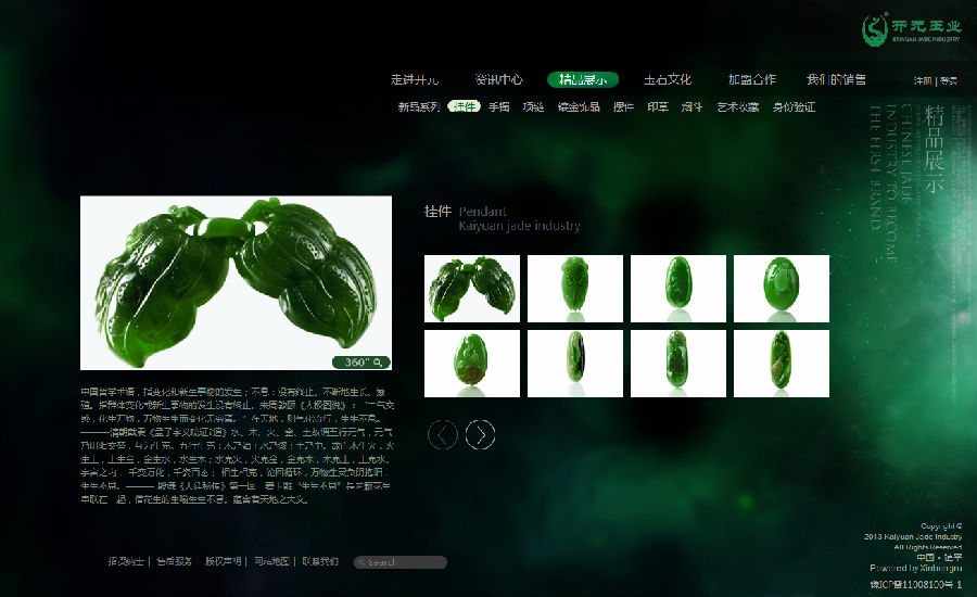 开元玉业有限世界杯压球平台_世界杯压球官网(China)官方网站位于驰名中外的中国玉雕之乡——河南·镇平,是目前国内碧玉加工行业的领军企业。世界杯压球平台_世界杯压球官网(China)官方网站主营玉器、珠宝、首饰等产品, 是唯一一家以规模化、企业化、品牌化运作的集玉料采集、产品研发、生产、批发销售及玉文化传播为一体,面向全国的大型玉雕专业世界杯压球平台_世界杯压球官网(China)官方网站。依靠精湛的工艺、人性化的销售站稳市场,依靠完善的售后服务赢得信誉,依靠“五大保障”确保客户利益,根据“三方收益”的原则逐步完善世界杯压球平台_世界杯压球官网(China)官方网站体系。